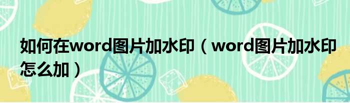 导读 大家好,今天小六子来为大家解答以下的问题,关于如何在word图片加水印,word图片加水印怎么加这个很多人还不知道,现在让我们一起来看看吧