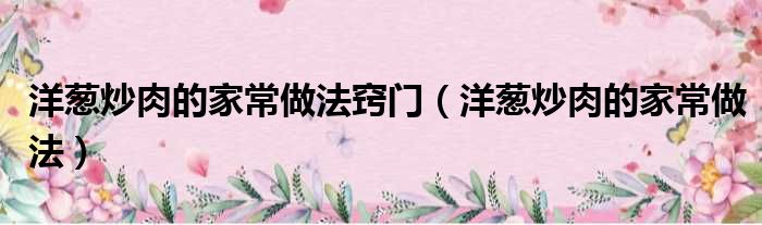 洋葱炒肉的家常做法窍门(洋葱炒肉的家常做法)