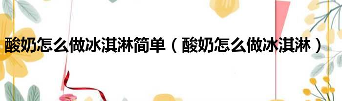 酸奶怎么做冰淇淋简单(酸奶怎么做冰淇淋)