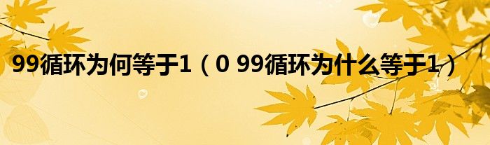 导读 大家好,今天小六子来为大家解答以下的问题,关于99循环为何等于1,0 99循环为什么等于1这个很多人还不知道,现在让我们一起来看看吧!1、