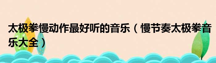 导读 大家好,今天小六子来为大家解答以下的问题,关于太极拳慢动作最好听的音乐,慢节奏太极拳音乐大全这个很多人还不知道,现在让我们一起来看