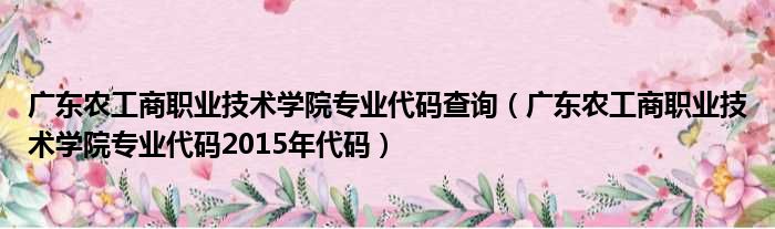 广东农工商职业技术学院专业代码查询(广东农工商职业技术学院专业代码2015年代码)