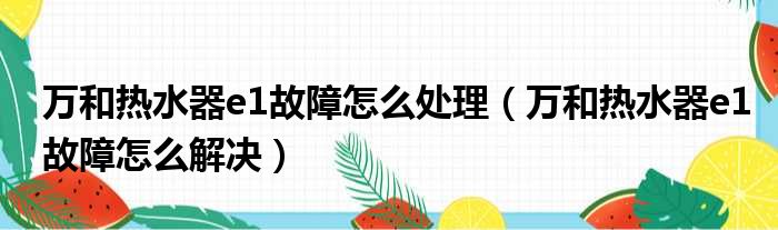 万和热水器e1故障怎么处理(万和热水器e1故障怎么解决)