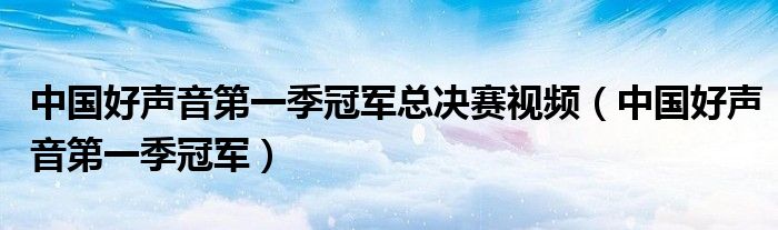 导读 大家好,今天小六子来为大家解答以下的问题,关于中国好声音第一季冠军总决赛视频,中国好声音第一季冠军这个很多人还不知道,现在让我们一
