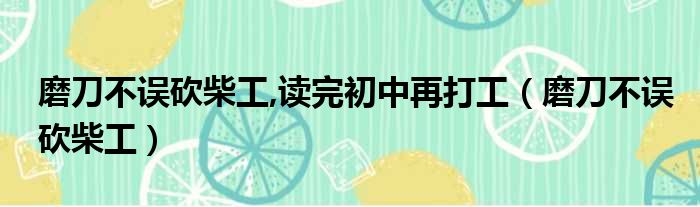 导读 大家好,今天小六子来为大家解答以下的问题,关于磨刀不误砍柴工,读完初中再打工,磨刀不误砍柴工这个很多人还不知道,现在让我们一起来看看