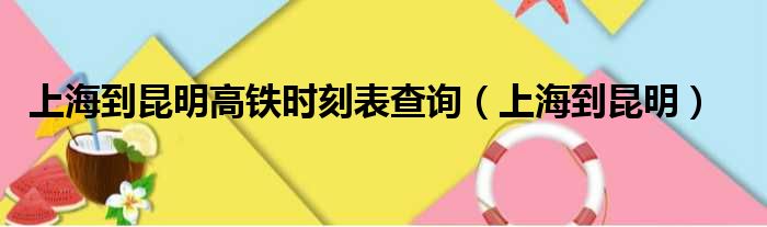 大家好,今天小六子来为大家解答以下的问题,关于上海到昆明高铁时刻表查询,上海到昆明这个很多人还不知道,现在让我们一起来看看吧!