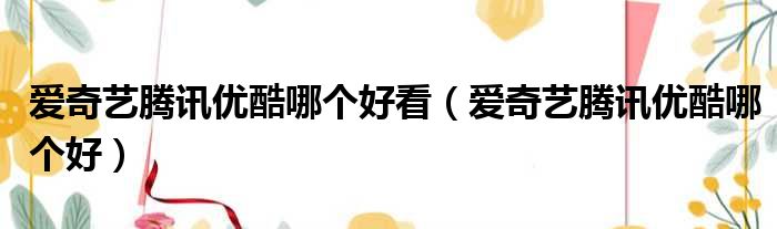 爱奇艺腾讯优酷哪个好看(爱奇艺腾讯优酷哪个好)