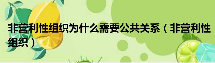非营利性组织为什么需要公共关系(非营利性组织)