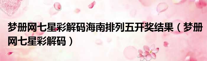梦册网七星彩解码海南排列五开奖结果(梦册网七星彩解码)