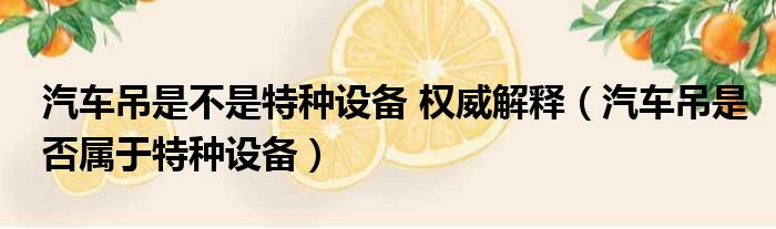 汽车吊是不是特种设备 权威解释(汽车吊是否属于特种设备)