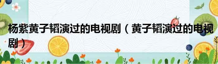 杨紫黄子韬演过的电视剧(黄子韬演过的电视剧)