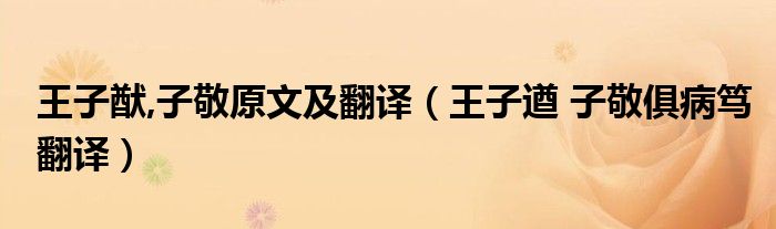 7、 译文】 王子猷、王子敬都病得很重,子敬先死了。