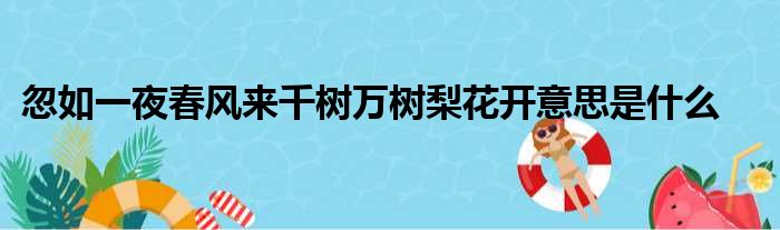 大家好,今天小六子来为大家解答以下的问题,关于忽如一夜春风来千树万树梨花开意思是什么这个很多人还不知道,现在让我们一起来看看吧!