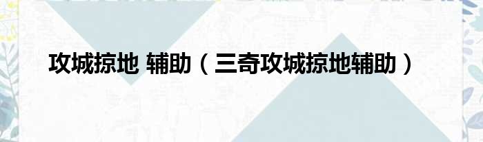 攻城掠地 辅助(三奇攻城掠地辅助)