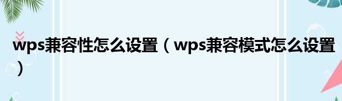 wps兼容性怎么设置(wps兼容模式怎么设置)