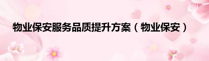 物业保安服务品质提升方案(物业保安)