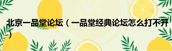 北京一品堂论坛(一品堂经典论坛怎么打不开)