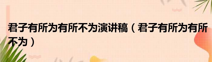 导读 大家好,今天小六子来为大家解答以下的问题,关于君子有所为有所不为演讲稿,君子有所为有所不为这个很多人还不知道,现在让我们一起来看看