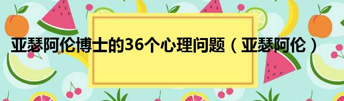 亚瑟阿伦博士的36个心理问题(亚瑟阿伦)