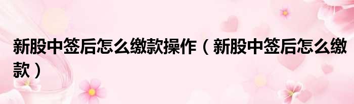 新股中签后怎么缴款操作(新股中签后怎么缴款)