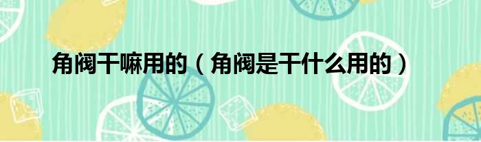 角阀干嘛用的(角阀是干什么用的)