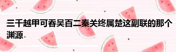 大家好,今天小六子来为大家解答以下的问题,关于三千越甲可吞吴百二秦关终属楚这副联的那个渊源这个很多人还不知道,现在让我们一起来看看吧!