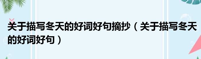 关于描写冬天的好词好句摘抄(关于描写冬天的好词好句)
