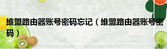 维盟路由器账号密码忘记(维盟路由器账号密码)