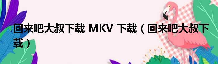 导读 大家好,今天小六子来为大家解答以下的问题,关于回来吧大叔下载 MKV 下载,回来吧大叔下载这个很多人还不知道,现在让我们一起来看看吧!