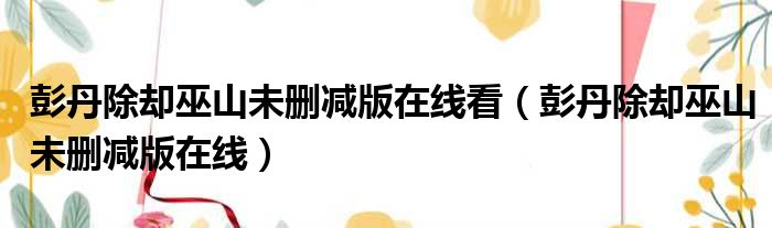 彭丹除却巫山未删减版在线看(彭丹除却巫山未删减版在线)