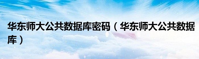 导读 大家好,今天小六子来为大家解答以下的问题,关于华东师大公共数据库密码,华东师大公共数据库这个很多人还不知道,现在让我们一起来看看吧