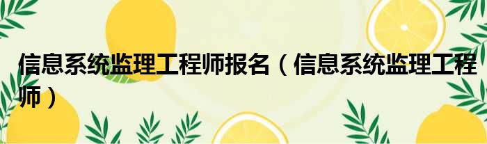 信息系统监理工程师报名(信息系统监理工程师)