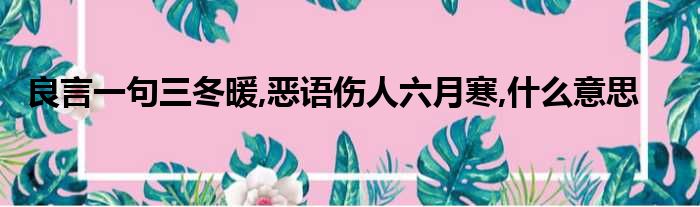 导读 大家好,今天小六子来为大家解答以下的问题,关于良言一句三冬暖,恶语伤人六月寒,什么意思这个很多人还不知道,现在让我们一起来看看吧!1、