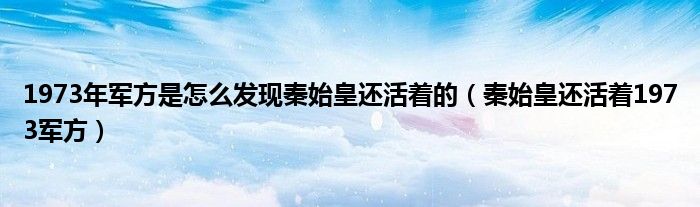 导读 大家好,今天小六子来为大家解答以下的问题,关于1973年军方是怎么发现秦始皇还活着的,秦始皇还活着1973军方这个很多人还不知道,现在让我
