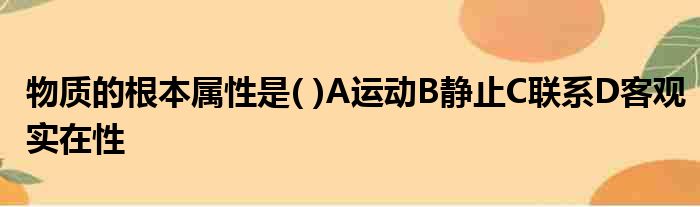 导读 大家好,今天小六子来为大家解答以下的问题,关于物质的根本属性是( )A运动B静止C联系D客观实在性这个很多人还不知道,现在让我们一起来看
