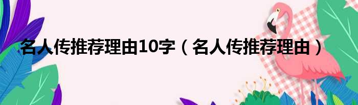 大家好,今天小六子来为大家解答以下的问题,关于名人传推荐理由10字,名人传推荐理由这个很多人还不知道,现在让我们一起来看看吧!