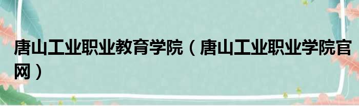 唐山工业职业教育学院(唐山工业职业学院官网)