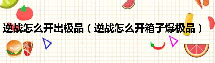 逆战怎么开出极品(逆战怎么开箱子爆极品)