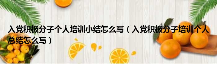 入党积极分子个人培训小结怎么写(入党积极分子培训个人总结怎么写)