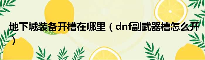地下城装备开槽在哪里(dnf副武器槽怎么开)