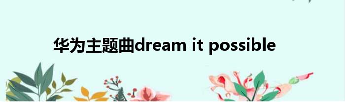 大家好,今天小六子来为大家解答以下的问题,关于华为主题曲dream it possible这个很多人还不知道,现在让我们一起来看看吧!