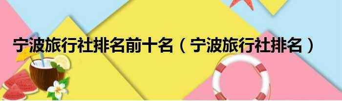 宁波旅行社排名前十名(宁波旅行社排名)