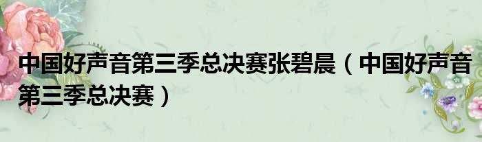 导读 大家好,今天小六子来为大家解答以下的问题,关于中国好声音第三季总决赛张碧晨,中国好声音第三季总决赛这个很多人还不知道,现在让我们一