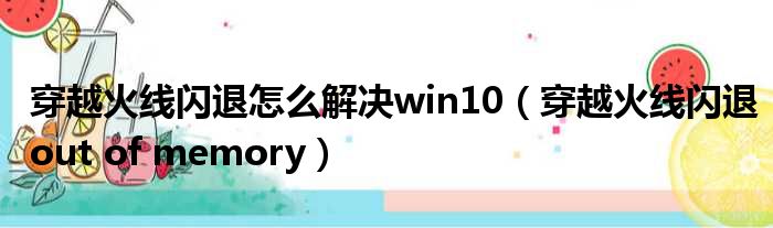 穿越火线闪退怎么解决win10(穿越火线闪退out of memory)