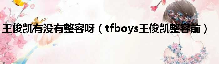 导读 大家好,今天小六子来为大家解答以下的问题,关于王俊凯有没有整容呀,tfboys王俊凯整容前这个很多人还不知道,现在让我们一起来看看吧!1、