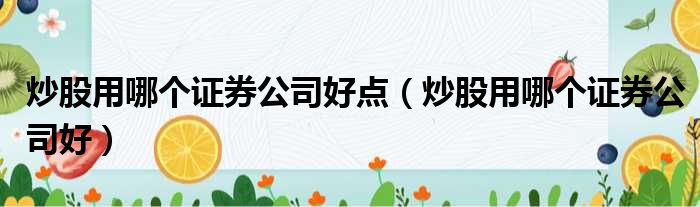炒股用哪个证券公司好点(炒股用哪个证券公司好)