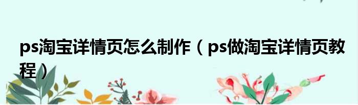 ps淘宝详情页怎么制作(ps做淘宝详情页教程)