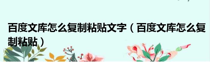百度文库怎么复制粘贴文字(百度文库怎么复制粘贴)