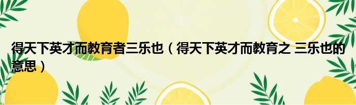 得天下英才而教育者三乐也(得天下英才而教育之 三乐也的意思)