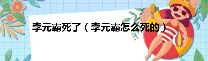 导读 大家好,今天小六子来为大家解答以下的问题,关于李元霸死了,李元霸怎么死的这个很多人还不知道,现在让我们一起来看看吧!1、李元霸到底是
